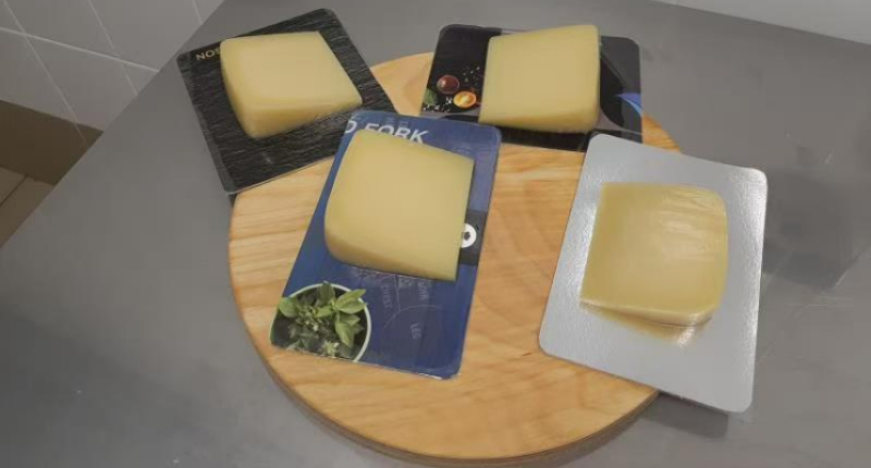 Skin packaging is also be widely used in the cheese industry. Cheese skin packaging (Vacuum Skin Packaging: VSP)uses clear skin packaging film that shrinks and seals tightly around cheese and a backing (cardboard/tray), creating a vacuum seal that extends shelf life, preserves flavor/color, prevents leakage, and offers high visibility for an attractive, protected product, ideal for specialty or portioned cheeses. It removes air to stop spoilage, to fit the cheese's shape perfectly, even irregular ones, while allowing for vertical display and easy opening. Barrier skin packaging film can effectively prevent cheese from becoming moldy and spoiled.